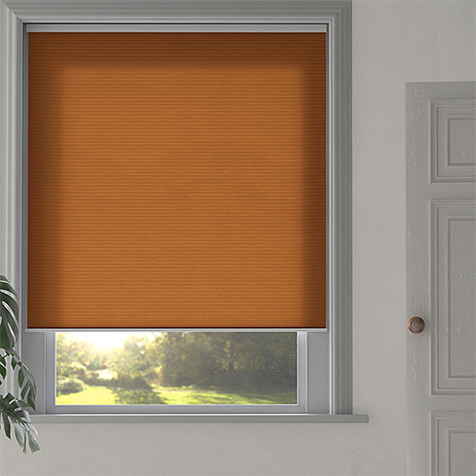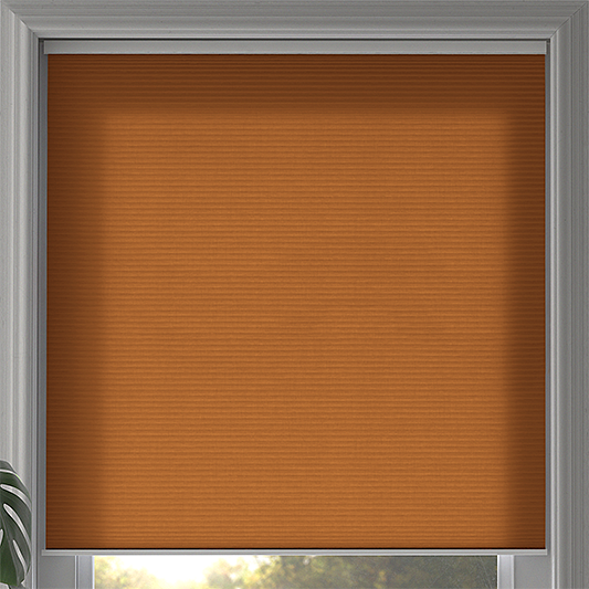 Experience the groundbreaking SmartCord® operating system, employing an ingenious retractable cord mechanism. These cords glide effortlessly, enabling seamless raising and lowering of this orange dim out Duette® Shade, catering to your comfort and safety requirements. With a consistent cord length, you'll never encounter unsightly, dangling cords that might compromise the shade's aesthetics—providing enhanced safety for both children and pets.